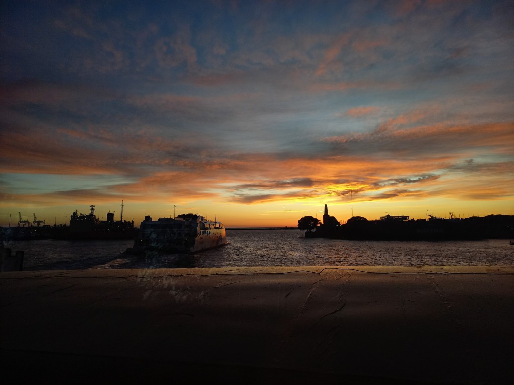 Zwar sollten die Passagiere zwei Stunden vor Abfahrt da sein um die Aus- bzw. Einreise und Gepäckaufgabe zu regeln, durch die lateinamerikanische Leichtigkeit (böse Zungen würden das Wort Ineffizienz verwenden) war diese Zeitangabe jedoch überflüssig und bescherte uns eine nette Wartezeit am Fährenterminal. Pünktlich zu Sonnenaufgang dann jedoch: Abfahrt, alle mal Einsteigen.