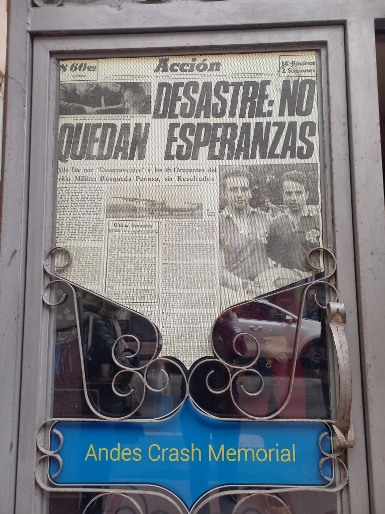 Denn nach einer Lawine und 72 Tagen auf dem Gletscher verkleinerte sich die Gruppe, aus der Not heraus wird eine neue Gesellschaft gegründet, in der jeder seine Aufgabe hat: Die sociedad de la nieve, also die Gesellschaft des Schnees hält die Gruppe aus Unbekannten zusammen. Eigentlich glaubt die Außenwelt nicht mehr daran, das Flugzeug oder geschweige denn lebende Menschen zu finden. In einem Gewaltmarsch versuchen zwei Passagiere dennoch aus den Anden zur Zivilisation zu kommen und Hilfe zu holen. Kurz vor Weihnachten dann die Rettung durch einen Hirten, der die zwei jungen Männer in Turnschuhen und leichter Kleidung erst für verschollene Touristen hält. Wessen Aufmerksamkeit jetzt geweckt ist, dem kann ich den Spielfilm „Überleben“ ans Herz legen. Oder den Besuch im Museo Andes.