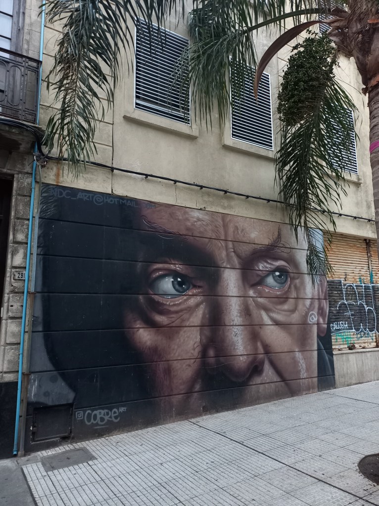 Trotz Frieren haben wir unsere Zeit in Montevideo schön verbracht: Die Straßenkünstlerszene in Uruguay ist riesig, fast jede freie größere (und auch kleinere) Wand wird mit einem Bild geschmückt. So finden sich beeindruckende Graffitis wie das des uruguayischen Schriftstellers Eduardo Galeano, dessen Werk „Die offenen Adern Lateinamerikas“ (Las venas abiertas de América Latina) über die Geschichte des kolonialisierten Lateinamerikas, als eines der populärsten Texte im spanischsprachigen Raum gilt.