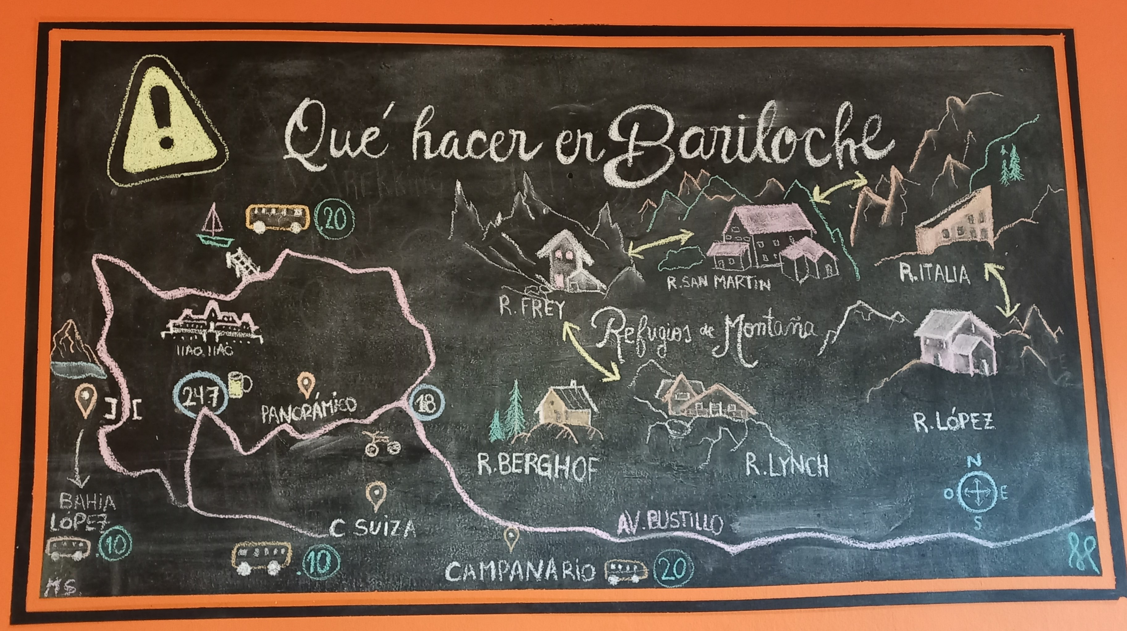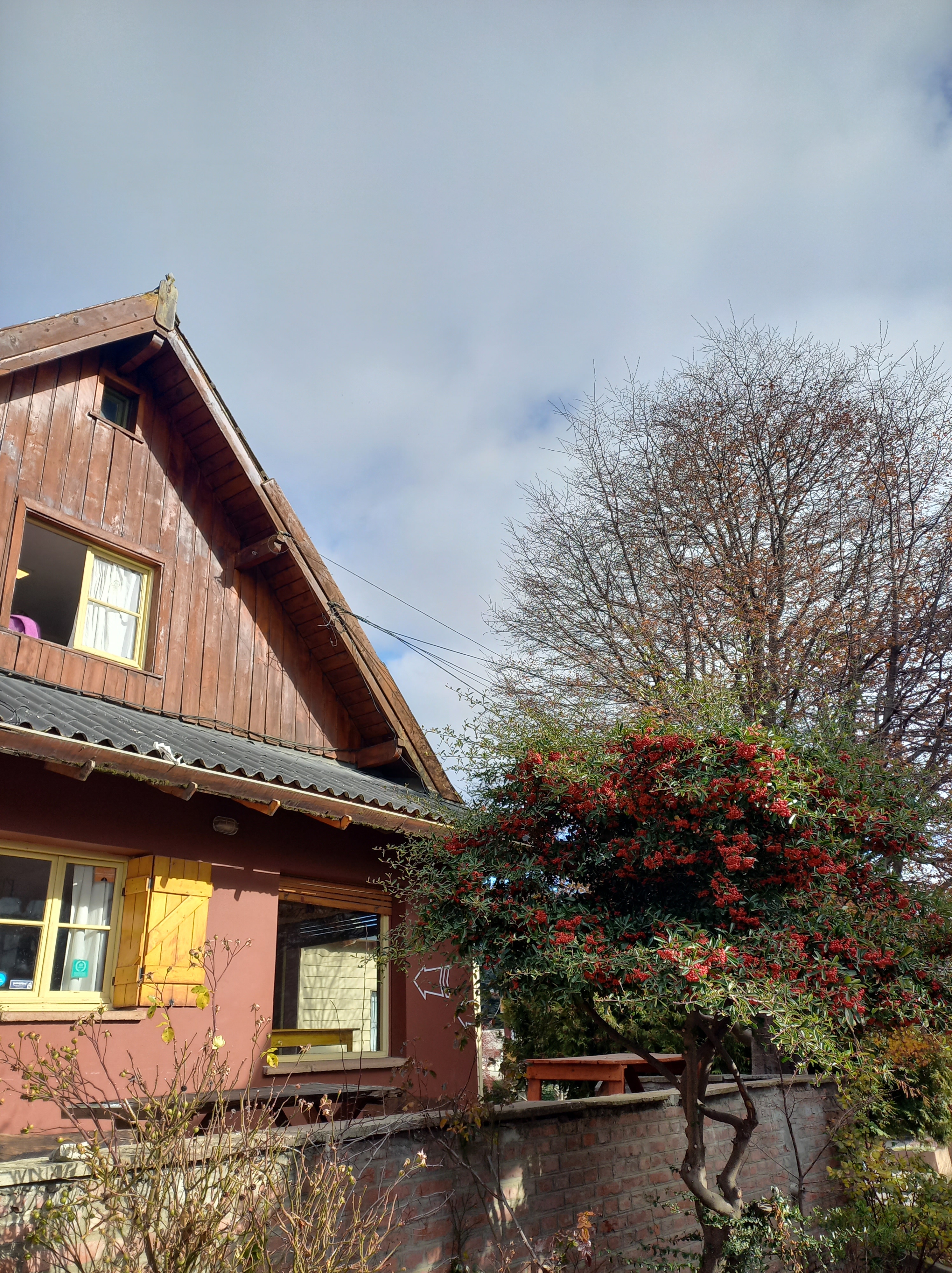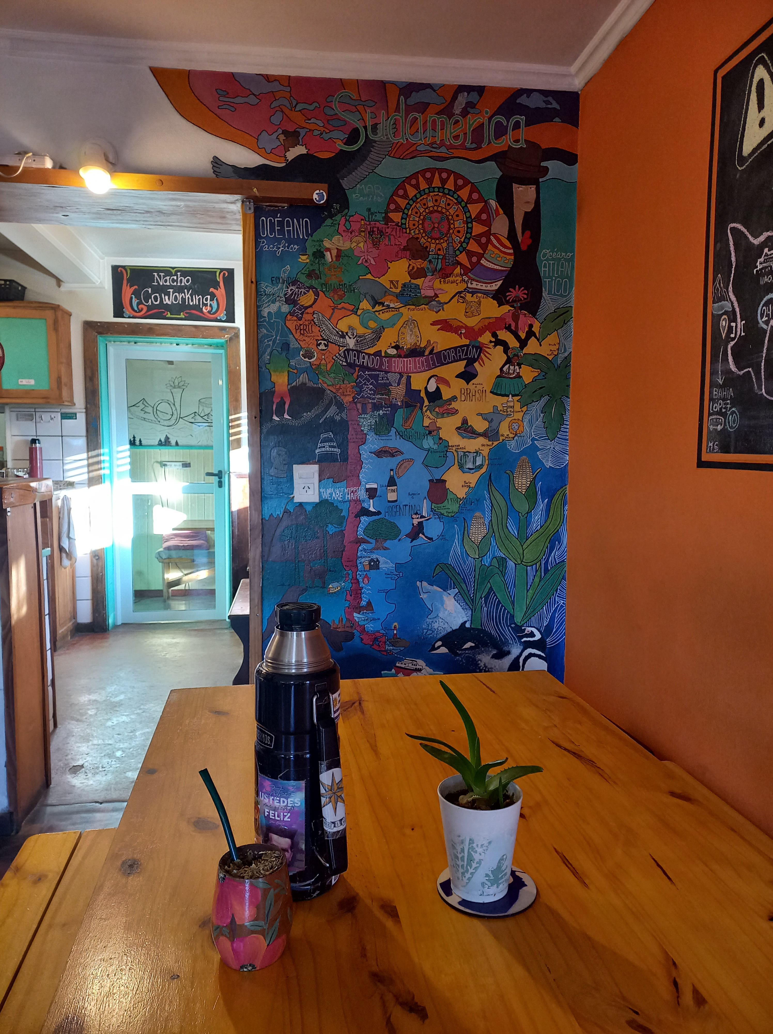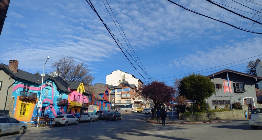 Tatsächlich ist das so, aber nicht nur das Wetter vermittelt Heimatgefühle: Auch die almhüttenähnliche Unterkunft mit der hölzernen Fassade und der Lage auf einem kleinen Hügel erinnert ein wenig an daheim. Innen drin ist dann aber wieder viel Argentinien zu finden mit bunten Wandmalereien und einer gemütlichen Küche. Angekommen in Bariloche habe ich immer dieses Gefühl des Widererkennens, dass gemeinsam mit dem Erinnern „Ach, ich bin doch in Südamerika“ eintritt.