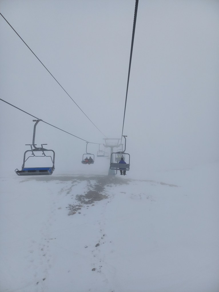 Mit großen Erwartungen verließen wir die Gondel, die uns auf 1.700 m brachte. Dort bot sich ein Bild, das ich so schnell nicht vergessen werde: Die letzten Ausläufer der abgesperrten Skipiste waren bevölkert von Menschen in gleichfarbigen Schneeanzügen, die sich angefixt von der wahrscheinlich ersten Schneeerfahrung mit flachen sogenannten „Porutschern“ den milden Abhang hinunterstürzten. Eigens dafür stationierte Fotografen boten Touristen „Fotos im Schnee“ an, die daraus bestanden, dass sich die Models in den nicht mehr ganz so weißen Schnee plumpsen ließen, um darin frech zu posen.