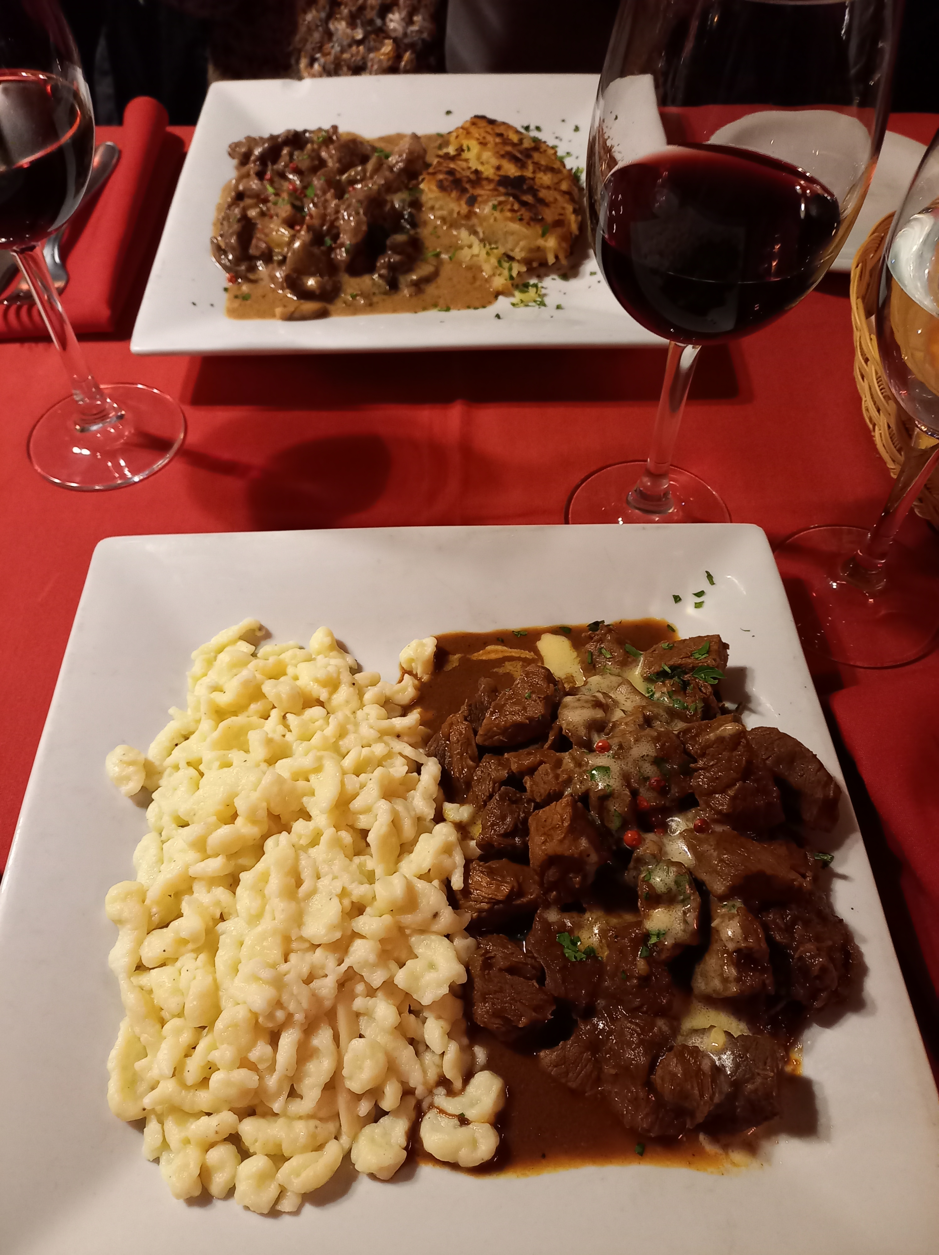 Neben Schokolade mit einem maximalen Zuckergehalt (argentinisch eben), habe ich an diesem kalten Wochenende im Juni auch andere Delikatessen genossen. Nach vier Monaten ohne bayerische Schmankerl war es in Bariloche nämlich so weit: Spätzle, Sahnegeschnetzeltes und Apfelstrudel haben noch nie so gut geschmeckt. Sogar Brezen konnten wir in der Bäckerei „Bretzel“ kaufen.