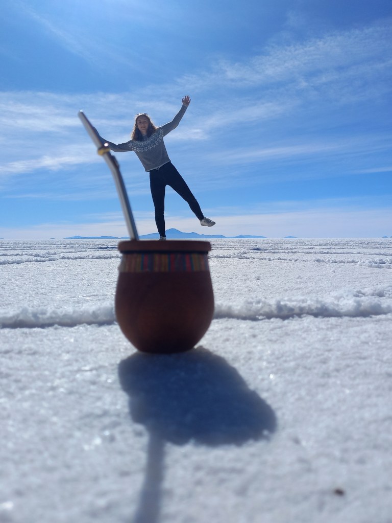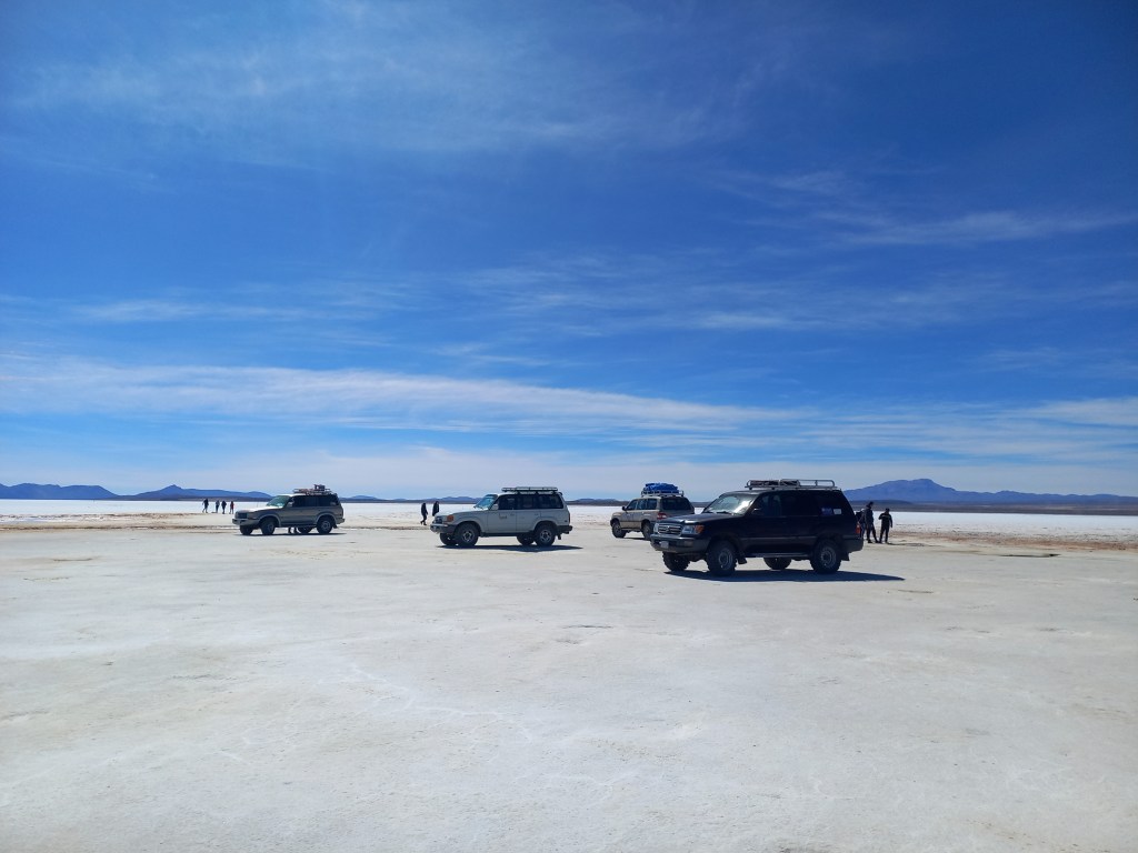 „Dieses Jahr erwarten wir zum ersten Mal wieder viele Touristen, aber trotzdem werden es weniger sein als vor Corona“, erzählt uns der Fahrer auf der Tagestour durch den Salar de Uyuni. Wir hatten eine spanischsprachige Tour gebucht und da wir wahrscheinlich die ersten in der Agentur waren, haben wir so die Sprache auf dem Trip für unsere Mitreisenden bestimmt. Ein Geschwisterpaar aus Nordengland und eine deutsche Mutter mit ihrem vierjährigen Sohn sind mit von der Partie. Aufgrund fehlender Spanischkenntnisse spielen wir zwei Studentinnen dann eben die Übersetzerinnen (und Kinderbespaßung) für den restlichen Tag.