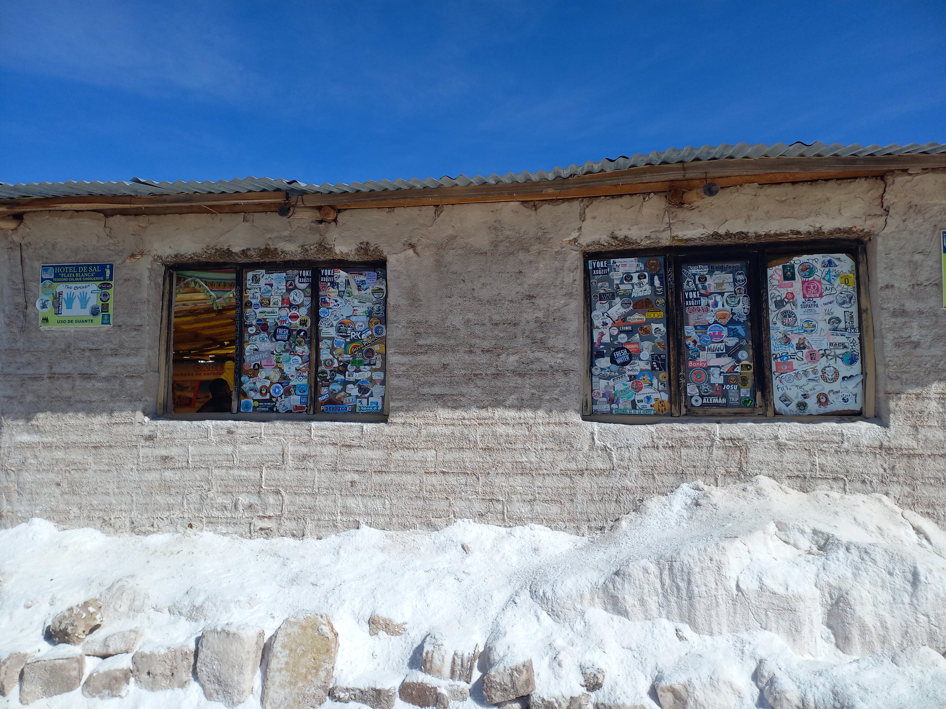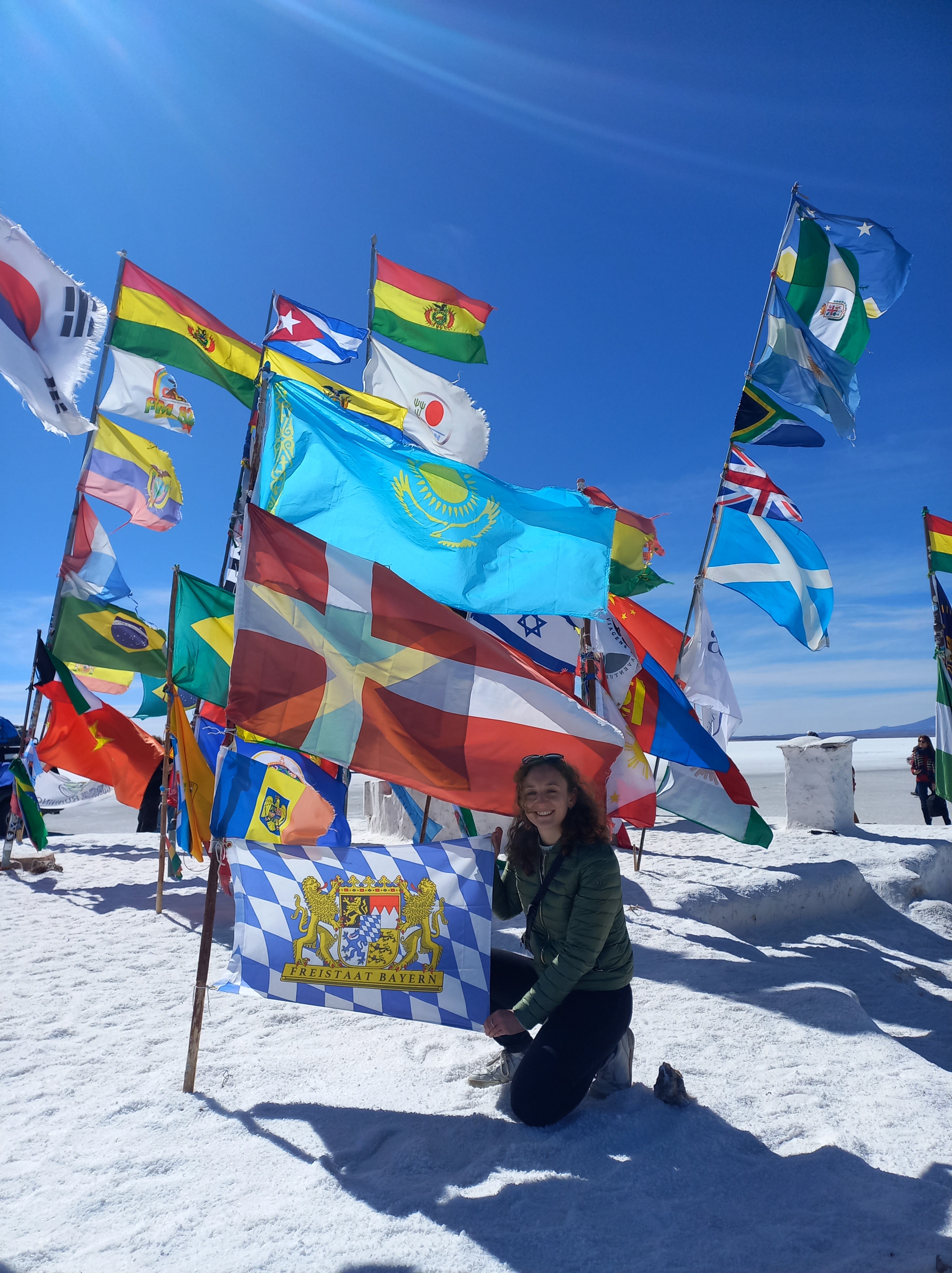 Am Salzhotel, wo außer den Fenstern alles aus Salz zu sein scheint, befinden sich auch noch die „banderas del mundo“, unzählige Flaggen aus aller Welt. Eine Überraschung bildet die bayerische Fahne, die mir gleich ins Auge gefallen ist 😉