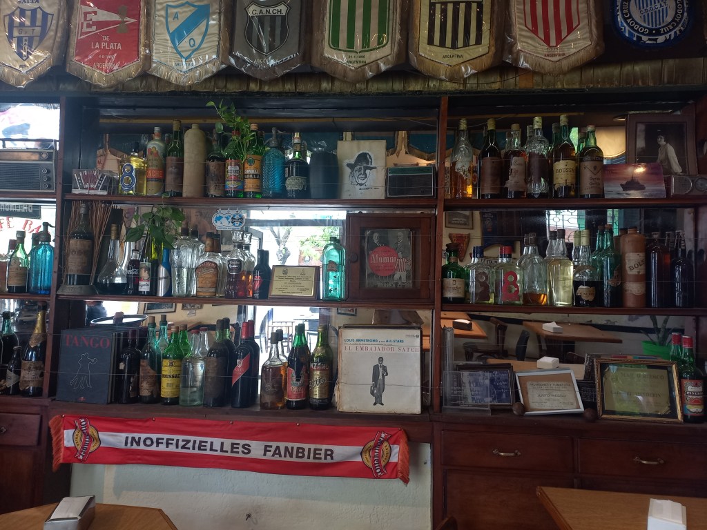 Notable, also bedeutend, sind diese Gaststätten vor allem für die Bewohner von Buenos Aires, die Porteños. Denn hier trafen sich Schriftsteller, Musiker, Schauspieler und Politiker, bis heute gelten die Bars als feste Institution im Kulturbereich. Je nach Stadtviertel gibt es ganz unterschiedliche Bares und Cafés Notables. So befinden sich in unserer Nachbarschaft in San Telmo die Bar „La Poesía“, die ganz den schreibenden Dichtern und Denkern mit Fotos und Texten an den Wänden gewidmet ist, und „El Hipopótamo“, wo schon so einige kultige Spielfilme gedreht wurden.