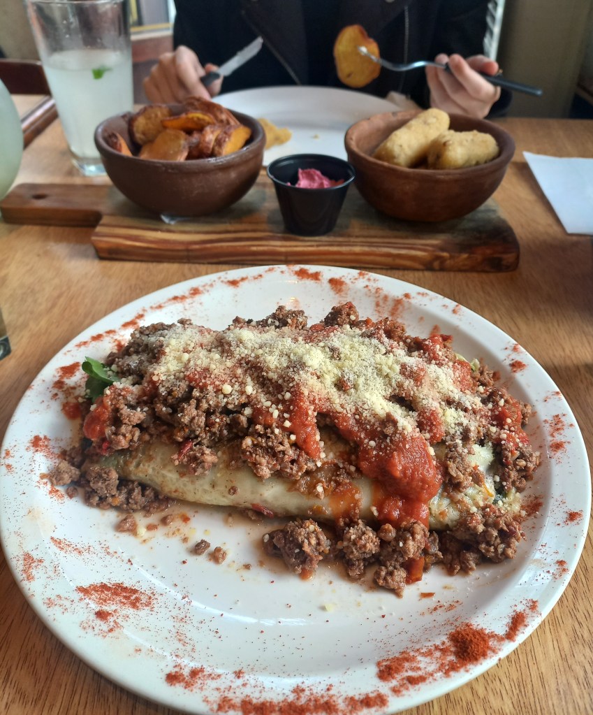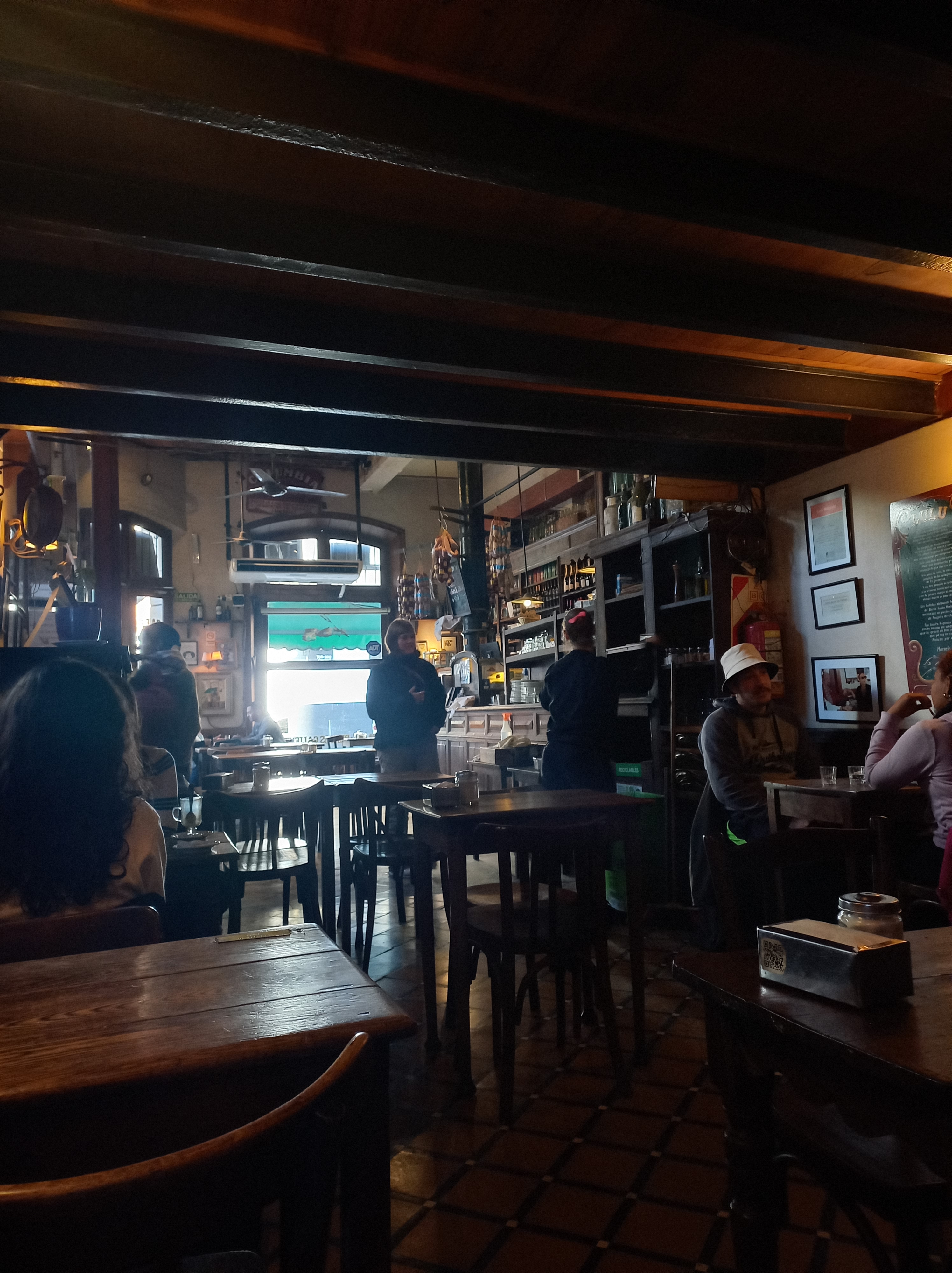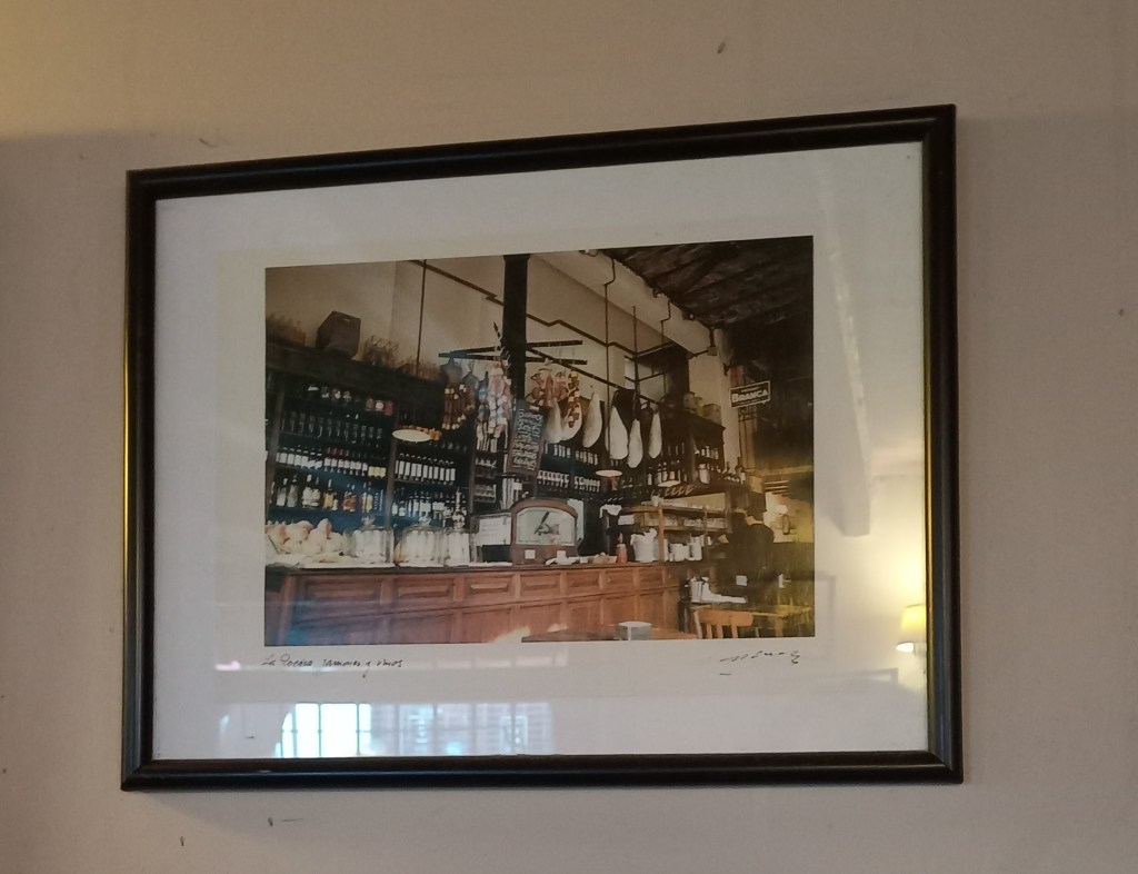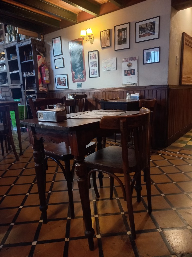 Was alle Bars und Cafés zudem verbindet, ist auf jeden Fall die Ausstattung. Bisher war ich zwar nur in vier Notables (ich muss ja schließlich auch mal die Uni-Schulbank drücken 😉), jedoch sind sie sich immer ein wenig ähnlich: So gut wie jede Bar Notable wirkt ein wenig düster. Das mag wahrscheinlich an den dunklen Holzstühlen und -tischen liegen, die für das besondere Flair in den Gaststätten sorgen. Der große Tresen im Eingangsbereich mit einer Vielzahl an Weinflaschen und aufgehängten geräucherten Würsten oder Fleisch vermittelt eine Gemütlichkeit, die ich eher von alten Berghütten kenne.