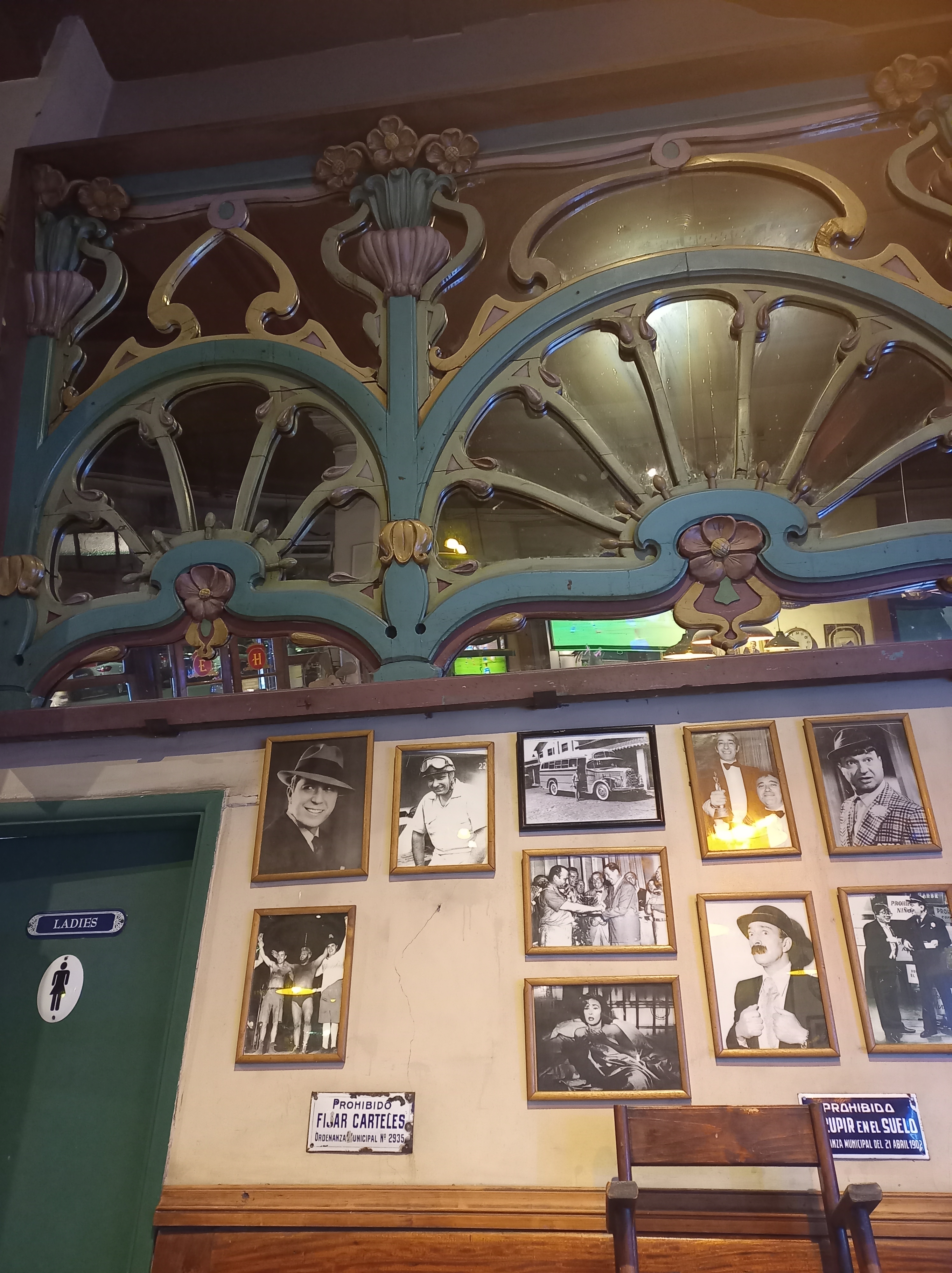 Ganz anders dann die Bar, die nach dem Nilpferd benannt wurde: Im „Hipopótamo“ finden sich Relikte aus dem Anfang des letzten Jahrhunderts mit Fotos von Schauspielern und Sängern. Sogar eine Anleitung für den Tango (links oben) ist an der Wand angebracht.