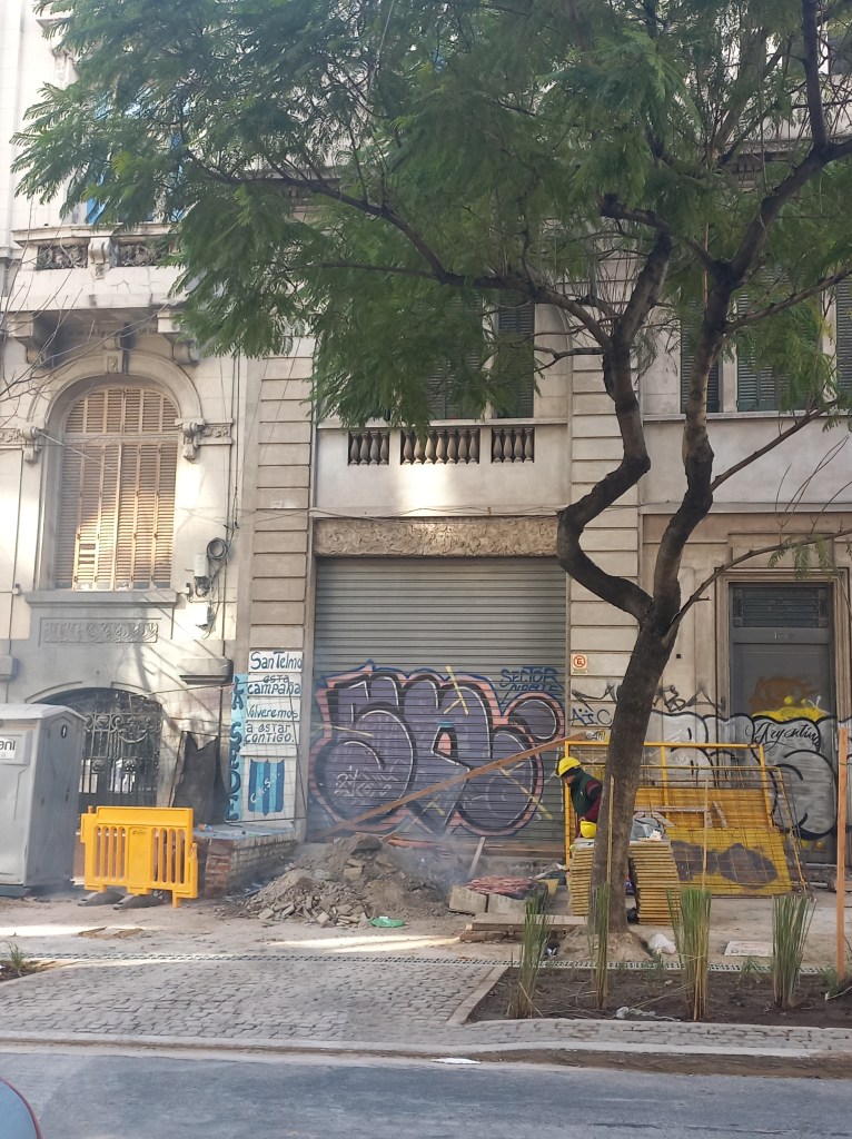 Wieder zurück in Buenos Aires, stellte ich mit großem Vergnügen fest, dass die Bauarbeiter trotz argentinischer Arbeitsweise ziemlich schnell die Straße geglättet, geteert und den Bürgersteig gepflastert hatten. Der nächste Häuserblock ist nun also dran und so kann die Phase der lokalen Baustellenevolution aus einer größeren Distanz heraus bestaunt werden. Die neu gepflasterten Wege sind jedoch noch nicht ganz für den Publikumsverkehr freigegeben, sondern werden als Lagerplatz für Steine und Schutt genutzt.